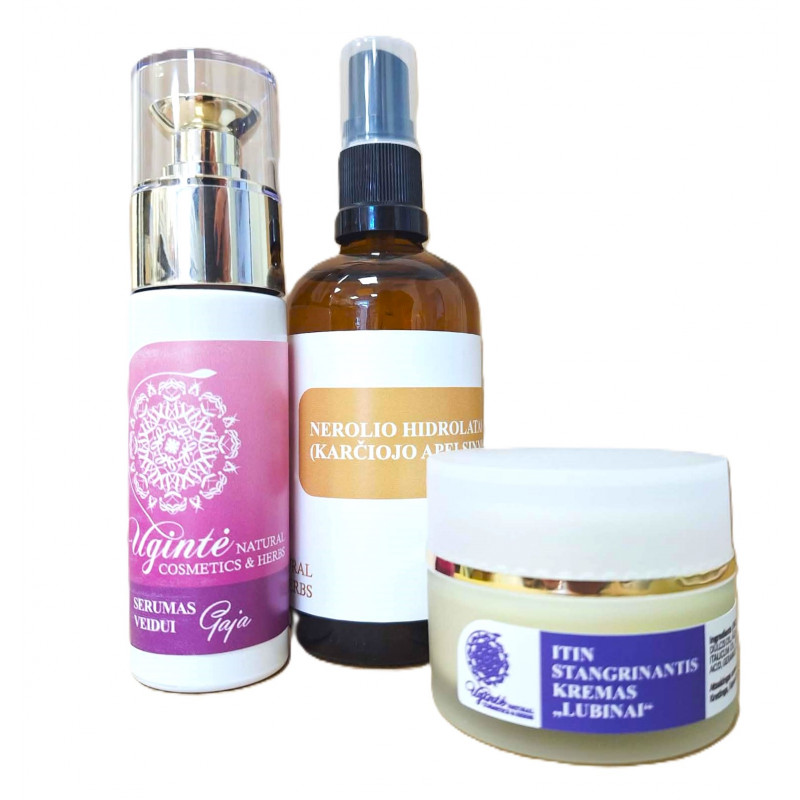 - Veido serumas „Gaja“ (su Q10) – lengvas serumas, kuris padeda palaikyti odos stangrumą, saugo nuo laisvųjų radikalų poveikio ir suteikia energijos pavargusiai odai.